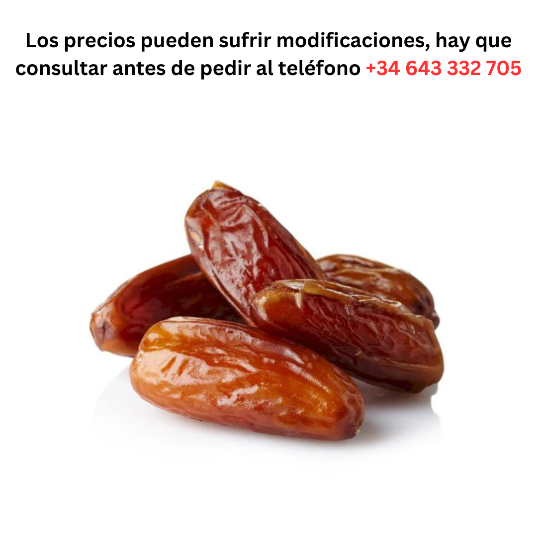 Los dátiles son frutos secos provenientes de la palmera datilera, conocidos por su sabor dulce y su textura suave y masticable. Son ricos en fibra, potasio, magnesio y antioxidantes, lo que los convierte en una opción nutritiva y saludable. Los dátiles son perfectos como snack natural, y también se pueden usar para endulzar postres, batidos y platos principales de manera saludable. Además de su delicioso sabor, los dátiles ofrecen beneficios para la salud, como mejorar la digestión, proporcionar energía sostenida y apoyar la salud del corazón.